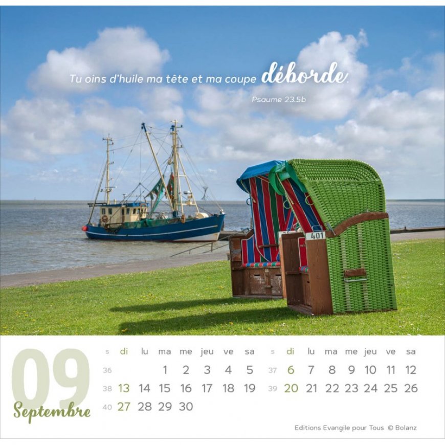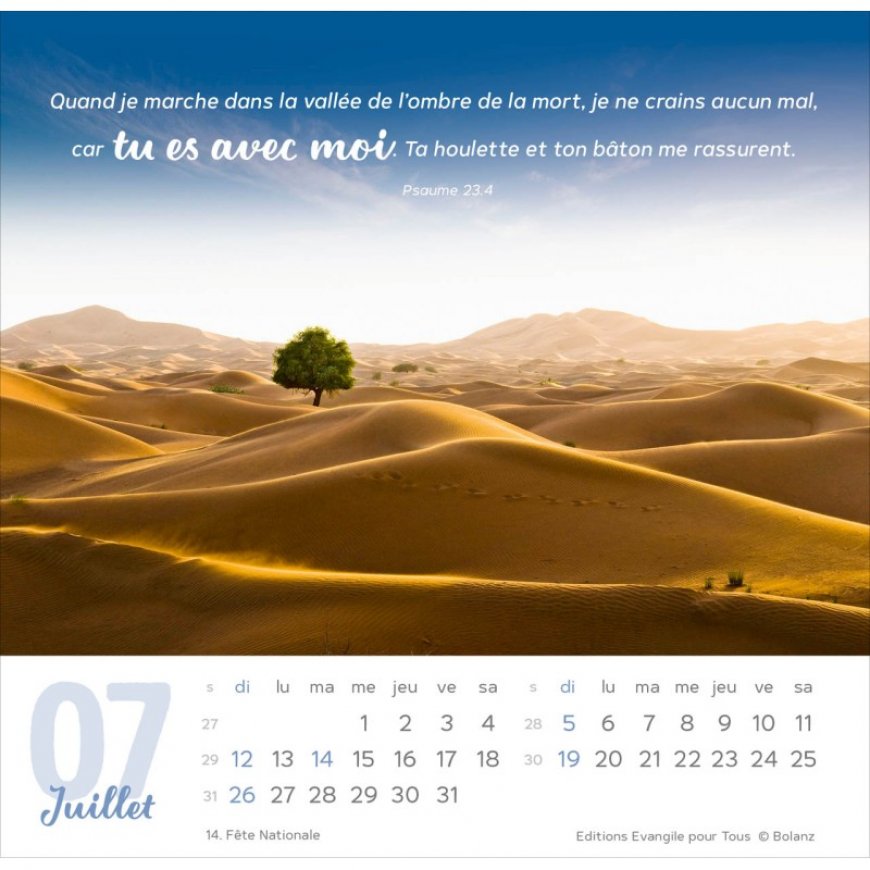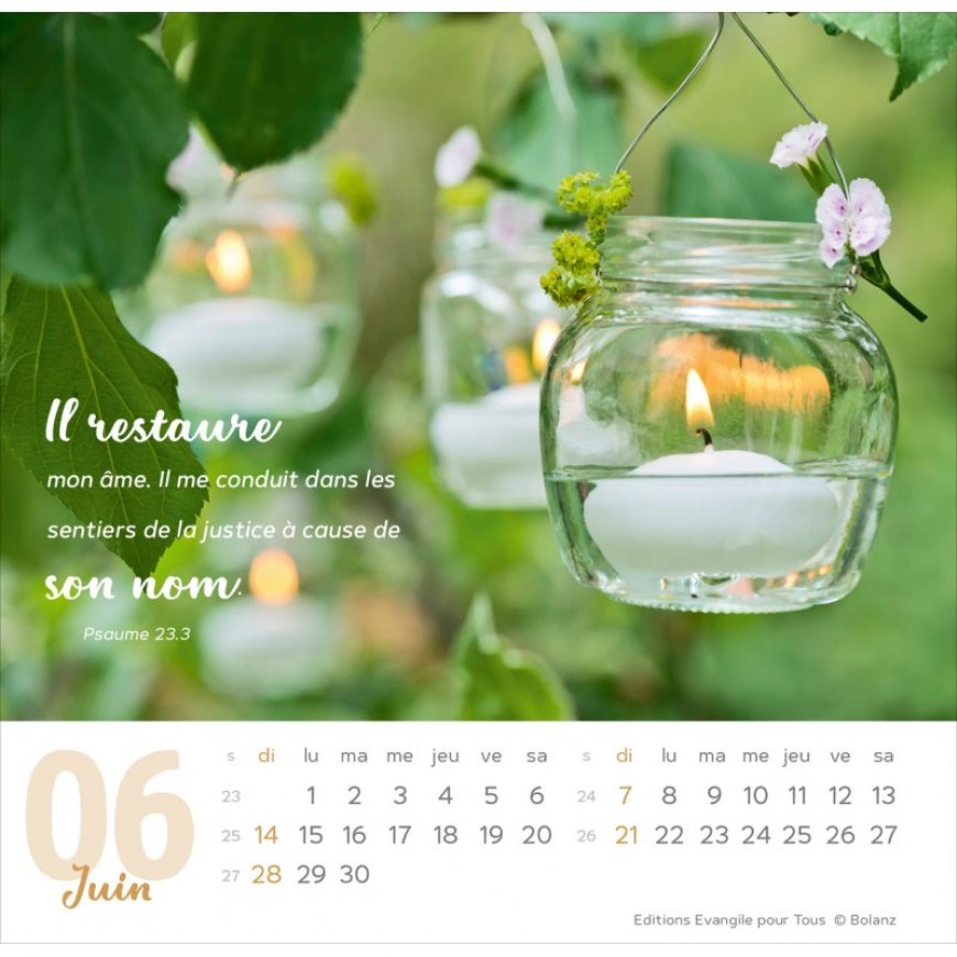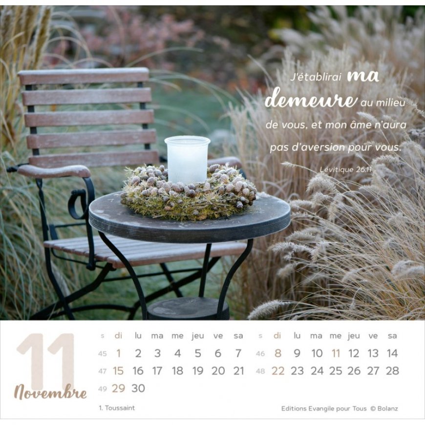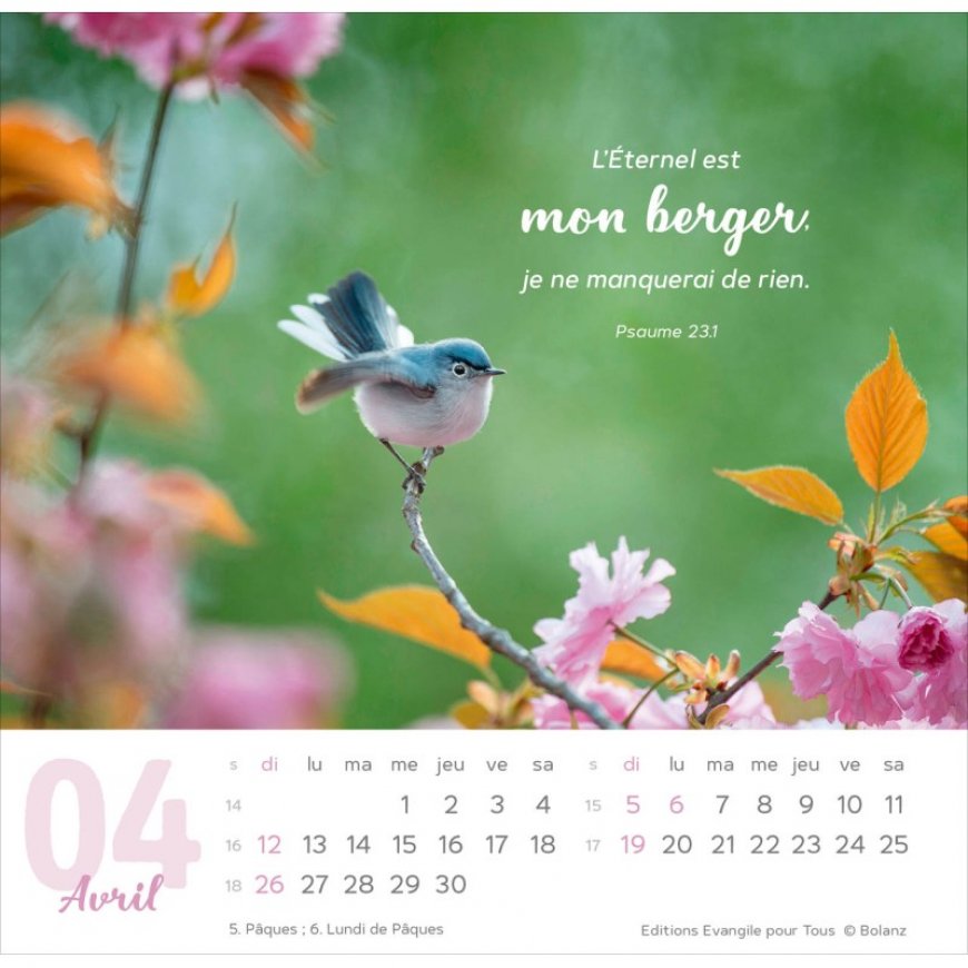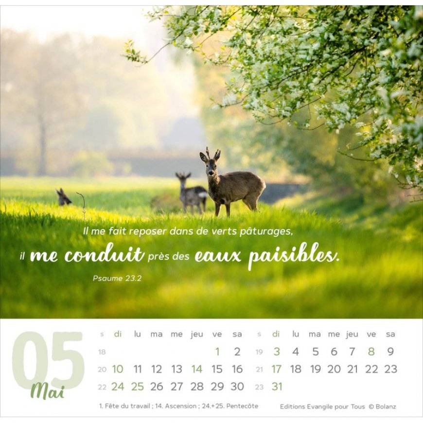 12 photos magnifiques, avec versets bibliques, avec méditation du texte biblique au verso.