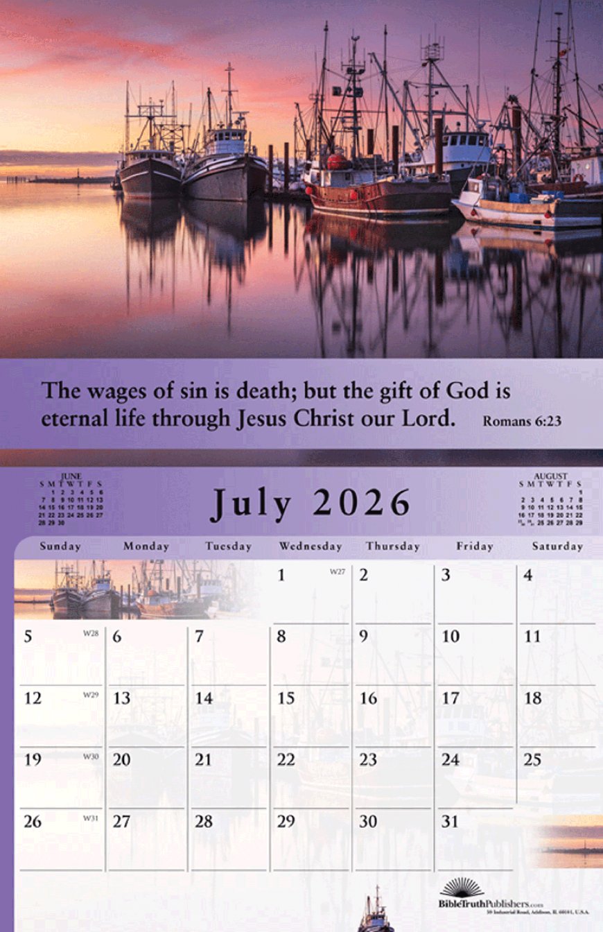 Calendrier à grandes cases idéal pour inscrire vos rendez-vous avec un verset différent à chaque mois.