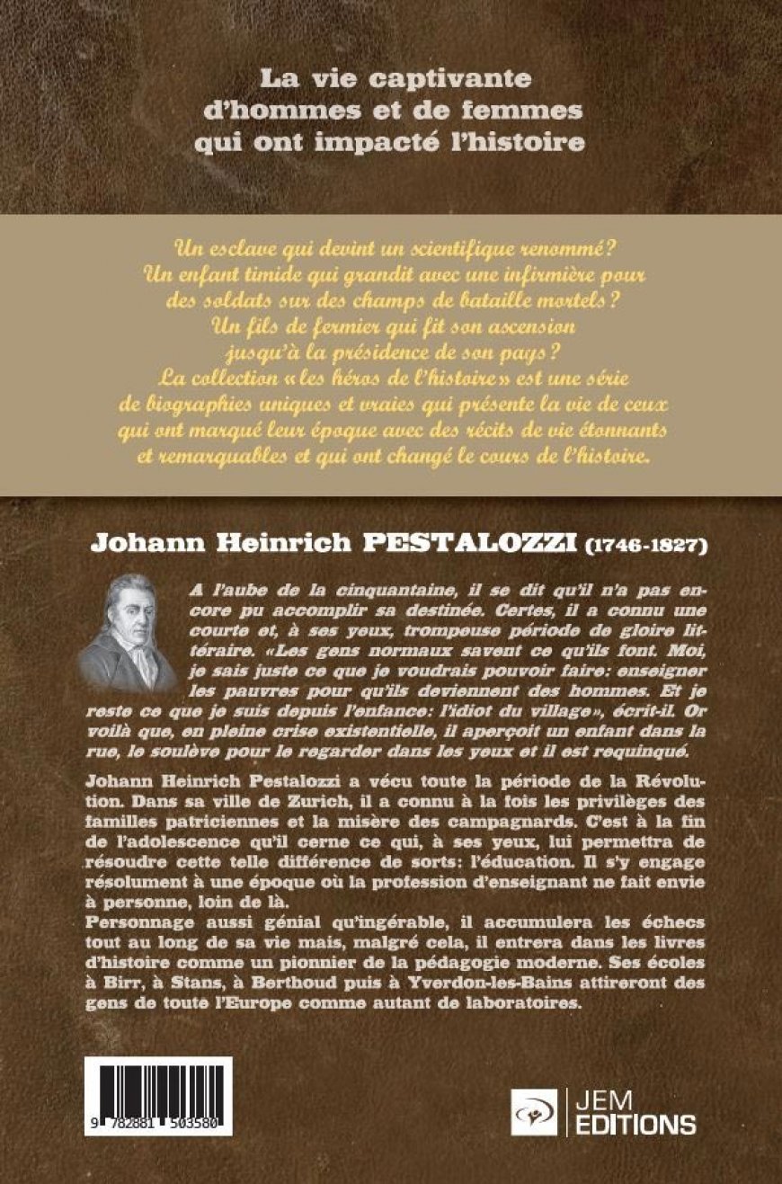 Personnage aussi génial qu'ingérable, il accumulera les échecs tout au long de sa vie mais, malgré cela, il entrera dans les livres d'histoire comme un pionnier de la pédagogie moderne. Ses écoles à Birr, à Stans, à Berthoud puis à Yverdon-les-Bains attireront des gens de toute l'Europe comme autant de laboratoires.