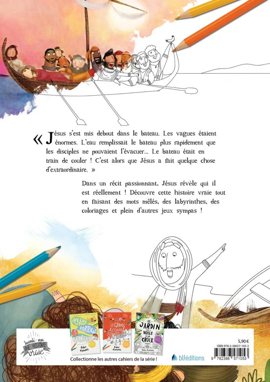 Dans un récit passionnant, Jésus révèle qui il est réellement! Découvre cette histoire vraie tout en faisant des mots mêlés, des labyrinthes, des coloriages et plein d’autres jeux sympas!