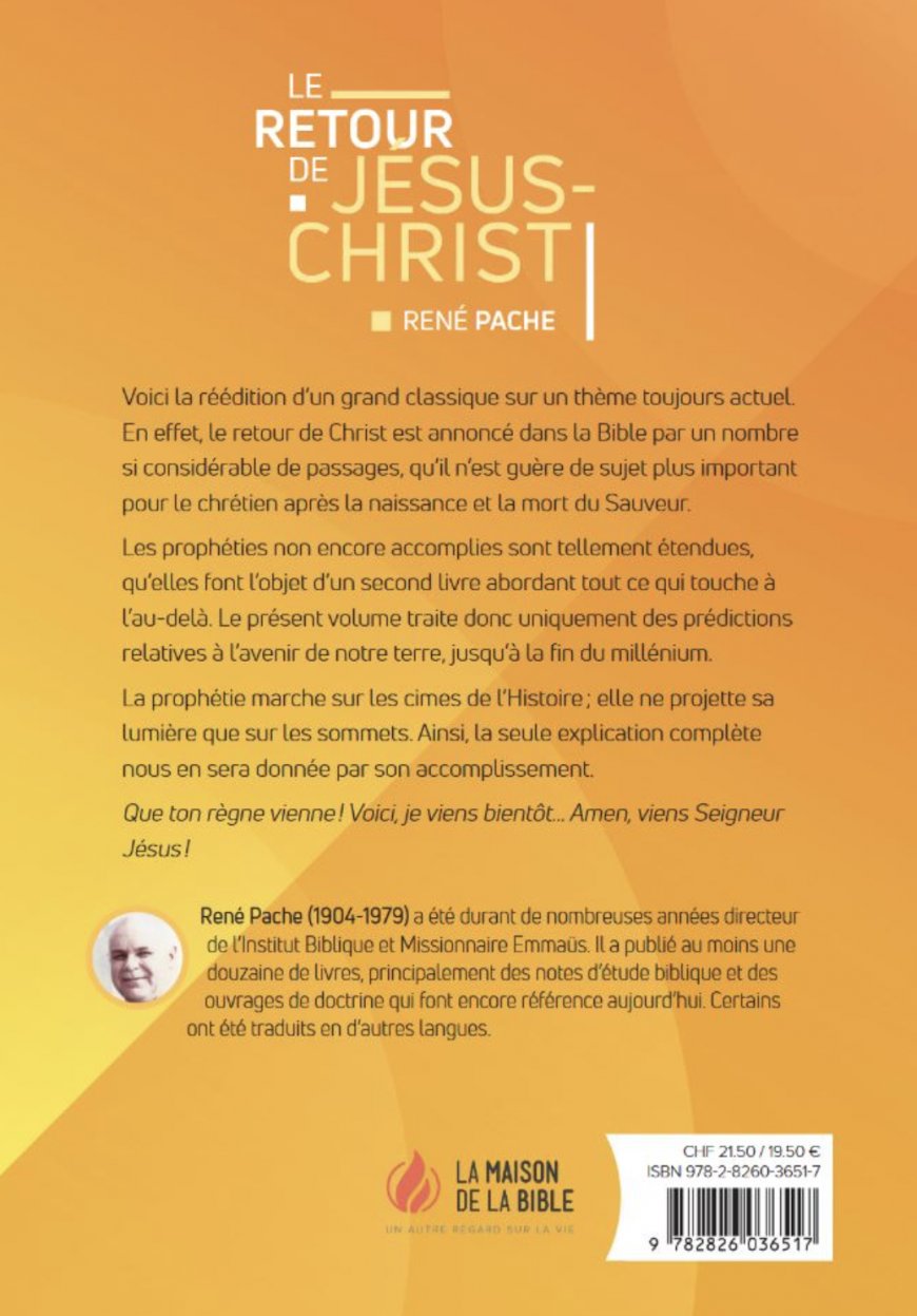 Voici la réédition d’un grand classique sur un thème toujours actuel. En effet, le retour de Christ est annoncé dans la Bible par un nombre si considérable de passages, qu’il n’est guère de sujet plus important pour le chrétien après la naissance et la mort du Sauveur.