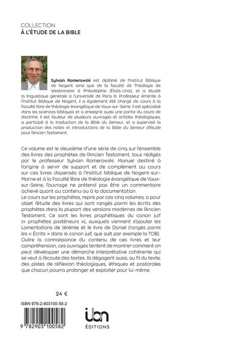 Ce volume est le deuxième d’une série de cinq sur l’ensemble des livres des prophètes de l’Ancien Testament, tous rédigés par le professeur Sylvain Romerowski. Manuel destiné à l’origine à servir de support et de complément au cours sur ces livres dispensés à l’Institut biblique de Nogent-sur-Marne et à la Faculté libre de théologie évangélique de Vaux-sur-Seine, l’ouvrage ne prétend pas être un commentaire achevé quant au contenu ou à la documentation. Le cours sur les prophètes, repris par ces cinq volumes, a pour objet l’étude des livres qui sont rangés parmi les écrits des prophètes dans la plupart des versions modernes de l’Ancien Testament. Ce sont les livres prophétiques du canon juif (« prophètes postérieurs »), auxquels viennent s’ajouter les Lamentations de Jérémie et le livre de Daniel (rangés parmi les « Écrits » dans le canon juif, que suit par exemple la TOB).
