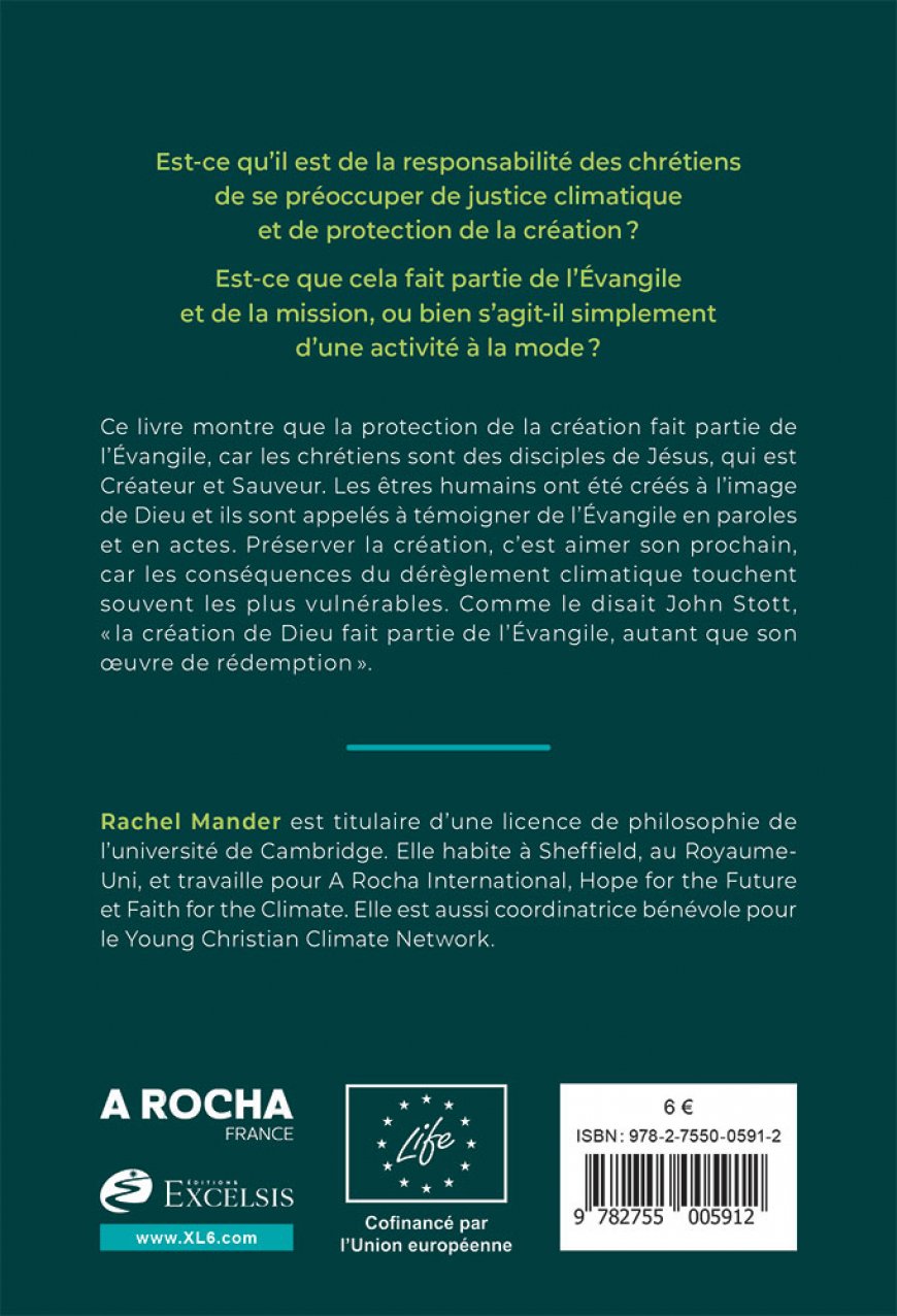 Ce livre montre que la protection de la création fait partie de l'Évangile, car les chrétiens sont des disciples de Jésus, qui est Créateur et Sauveur. Les êtres humains ont été créés à l'image de Dieu et ils sont appelés à témoigner de l'Évangile en paroles et en actes. Préserver la création, c’est aimer son prochain, car les conséquences du dérèglement climatique touchent souvent les plus vulnérables. Comme le disait John Stott, « la création de Dieu fait partie de l'Évangile, autant que son oeuvre de rédemption ».